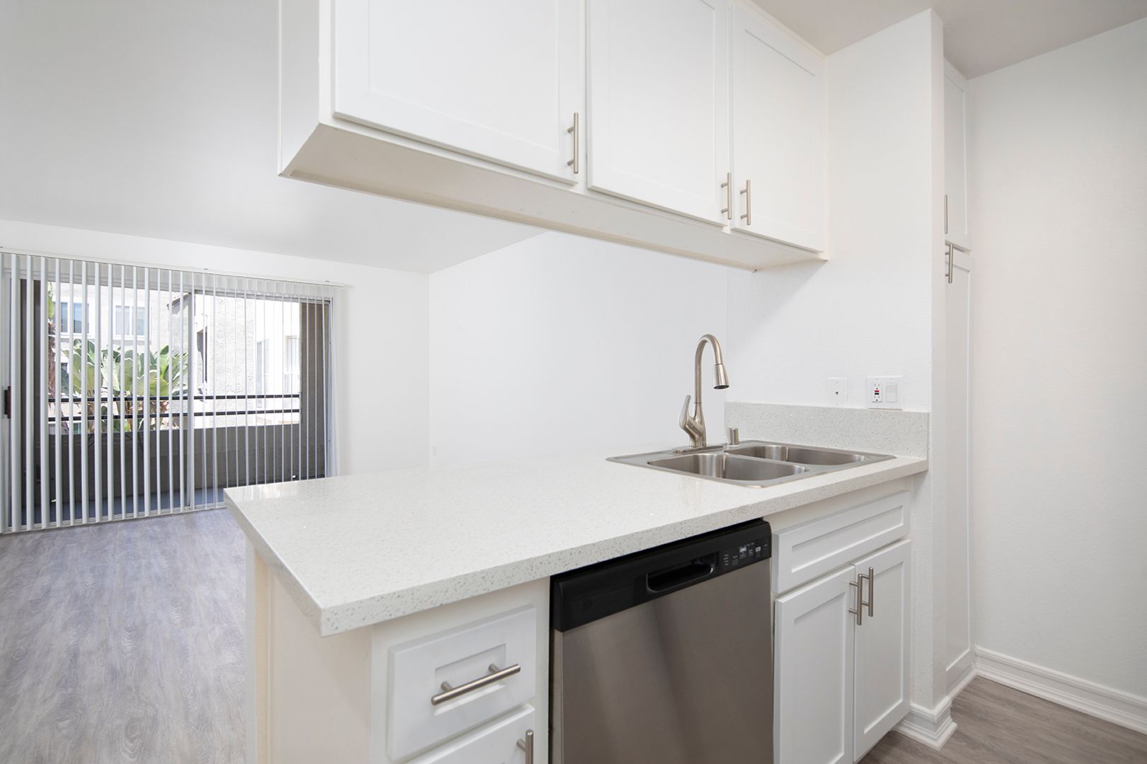 This beautiful 1 bedroom apartment features vinyl plank flooring, carpet in the bedroom, mirrored closet doors, quartz countertops, stainless steel appliances, central AC and heat, a dishwasher, and 1 assigned parking space.