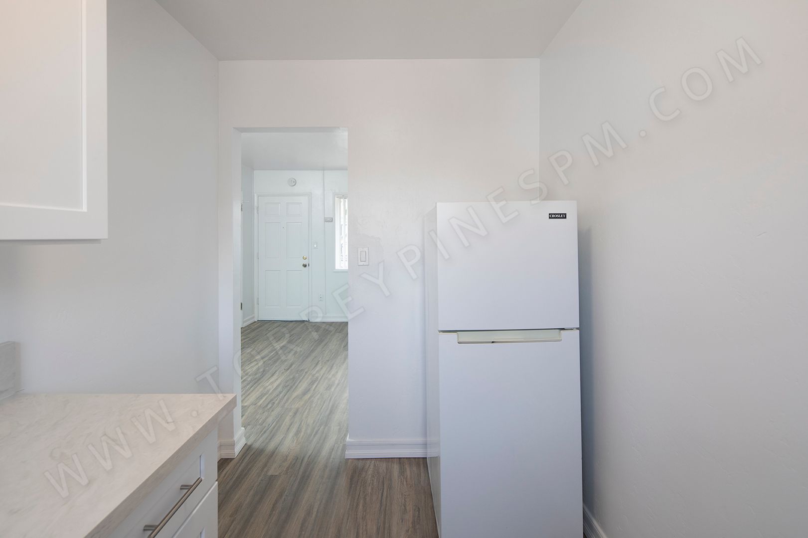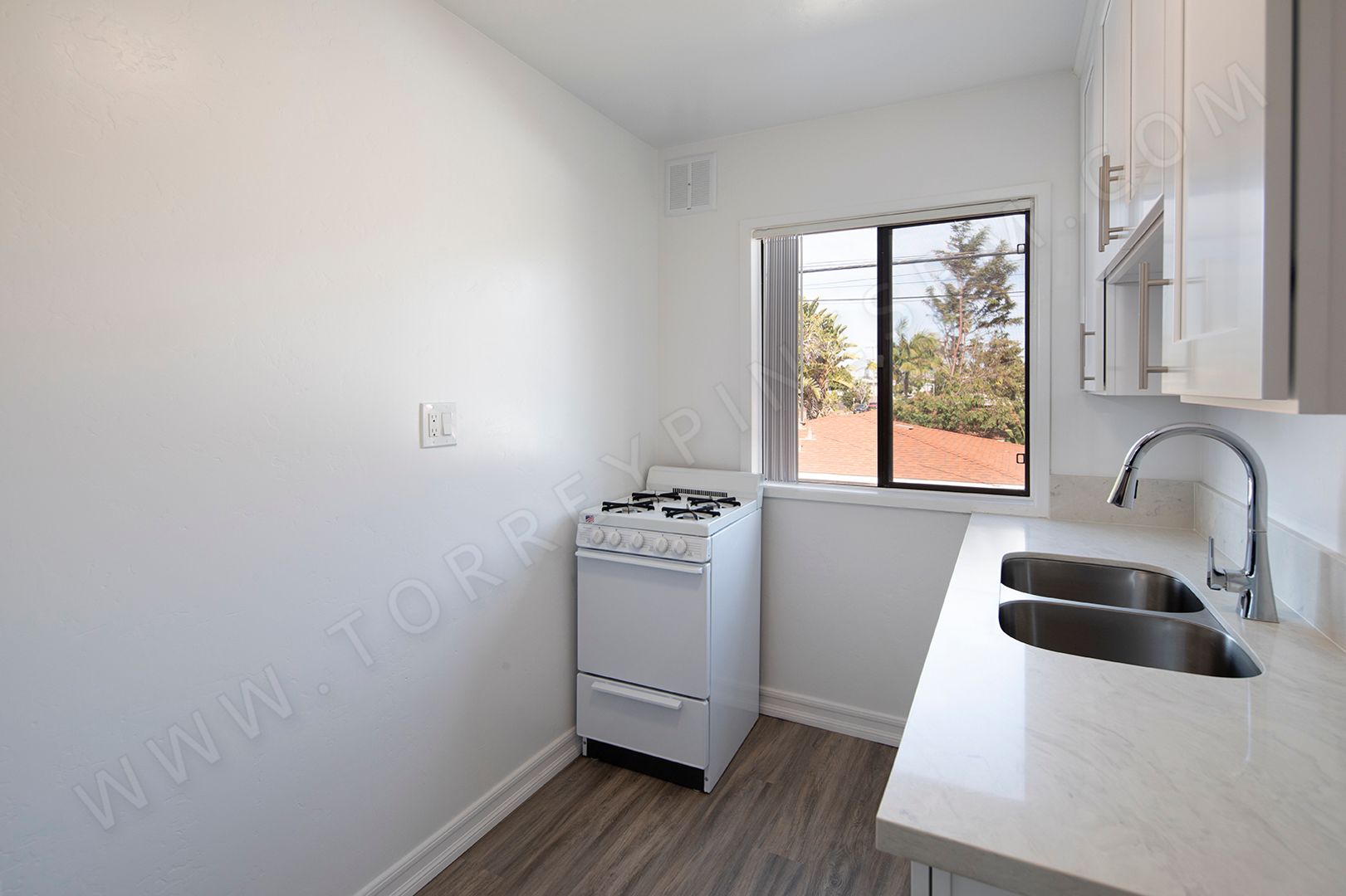 Inside this upstairs studio, you’ll find hard surface flooring throughout and an upgraded kitchen with new white shaker cabinets, new quartz countertops, and a gas stove. The bathroom features a convenient linen closet for added storage. Residents also have access to onsite coin laundry within the community.