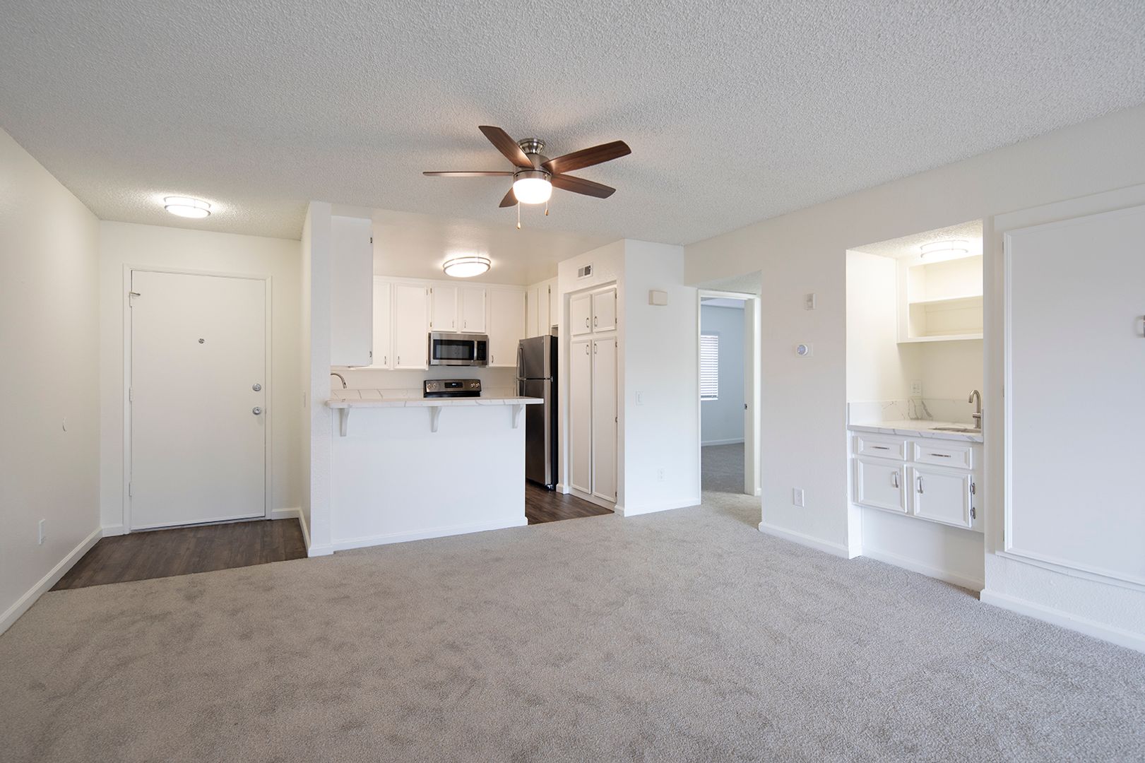 Fountain Estates is located on Grand Avenue in the East Valley Parkway area of Escondido. Our community is very inviting with its courtyards and barbecue/picnic areas, coupled with the convenience of an on-site swimming pool and spa. This spacious apartment home comes equipped with a gas fireplace, large walk-in closet, stainless steel appliances, a dishwasher, quartz countertops, white shaker cabinets, a private balcony with GORGEOUS views, and assigned parking.