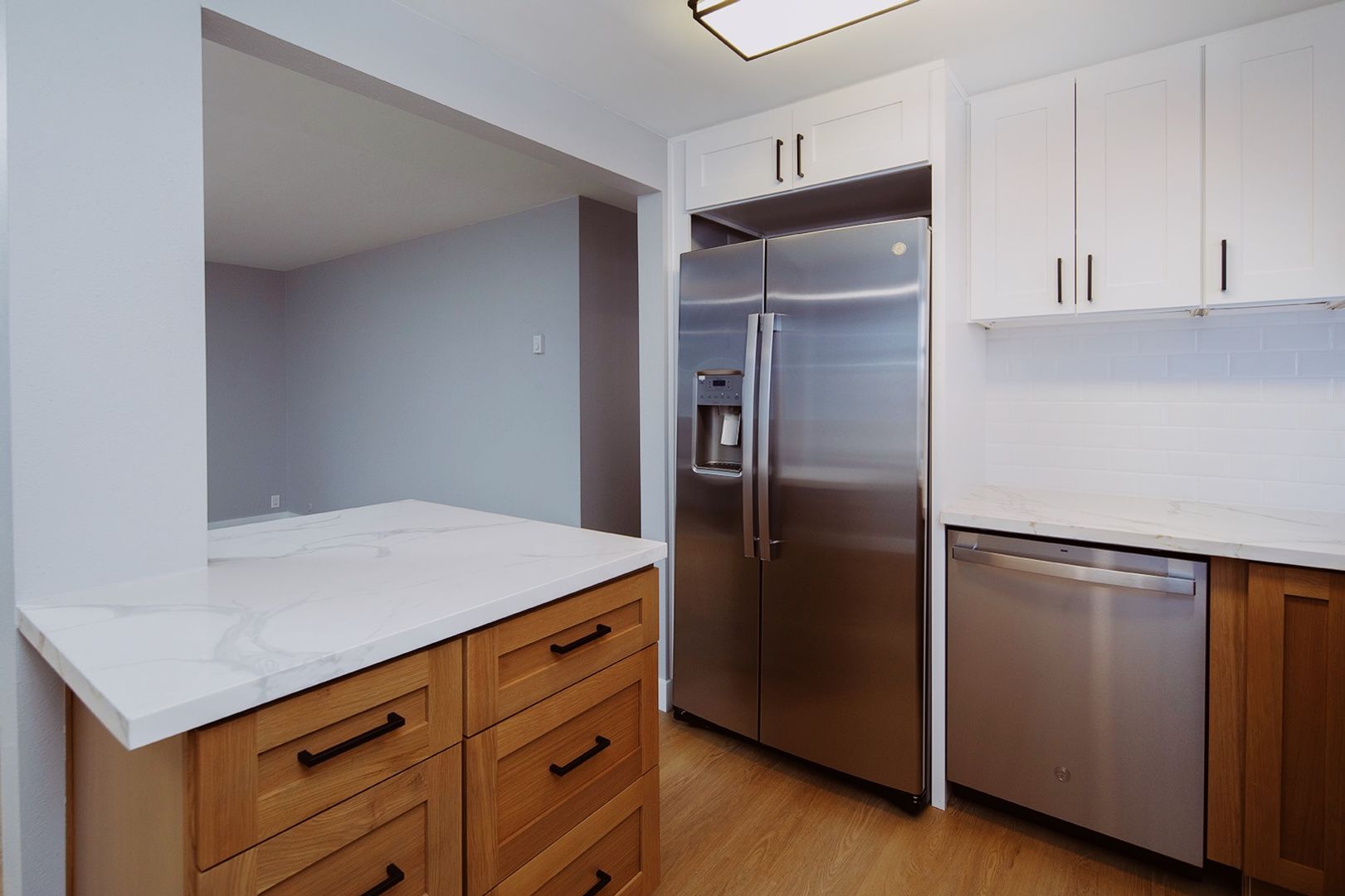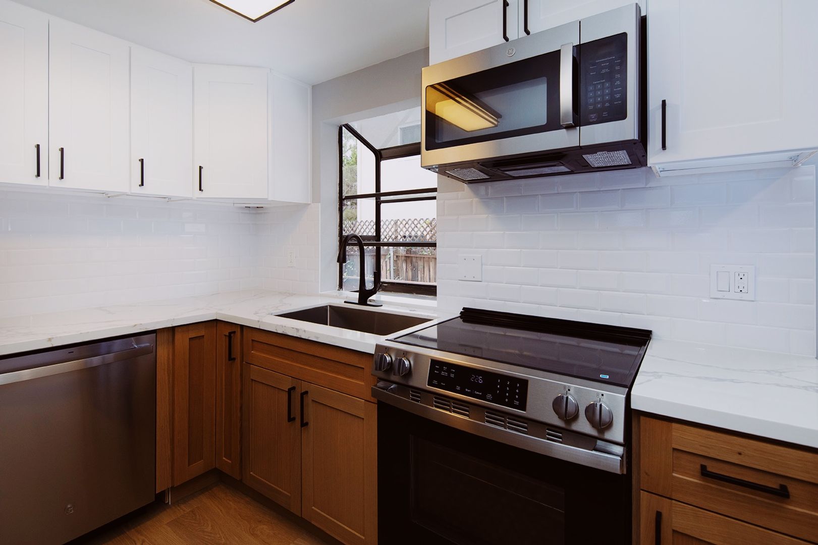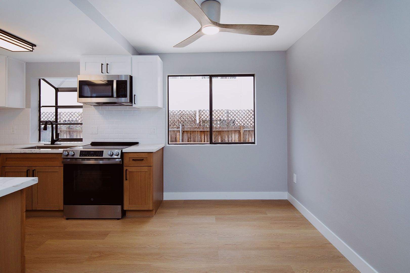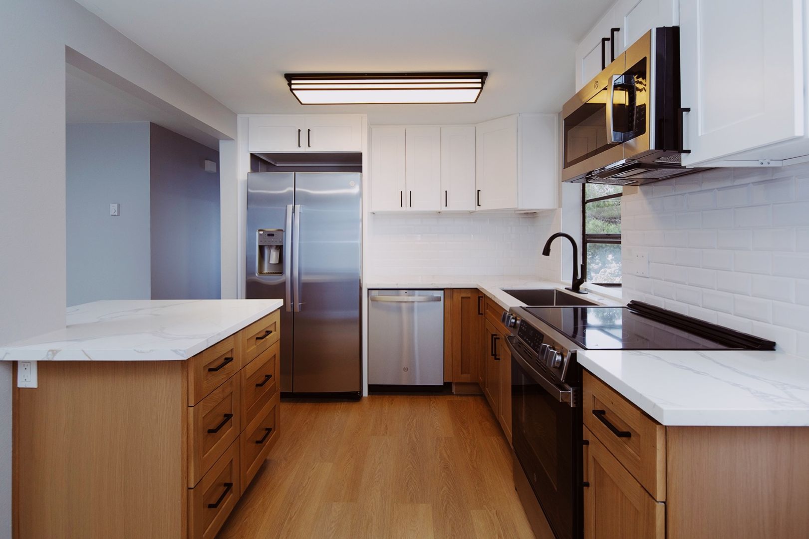 Experience coastal living in this BRAND NEW 2 bedroom, 2 bathroom apartment home located in a beautiful 12-unit community in the heart of La Jolla Village. This fully renovated residence features a thoughtfully designed kitchen with quartz countertops, modern backsplashes, stainless steel appliances, a dishwasher, and a french door-style refrigerator complete with ice and water dispensers. The apartment showcases new hard surface flooring, a cozy fireplace, and a washer and dryer conveniently located in-unit. Both bathrooms have been completely renovated with modern walk-in showers finished in classic subway tile, creating a clean and contemporary feel. Additionally, new windows are scheduled to be installed by the end of the year.