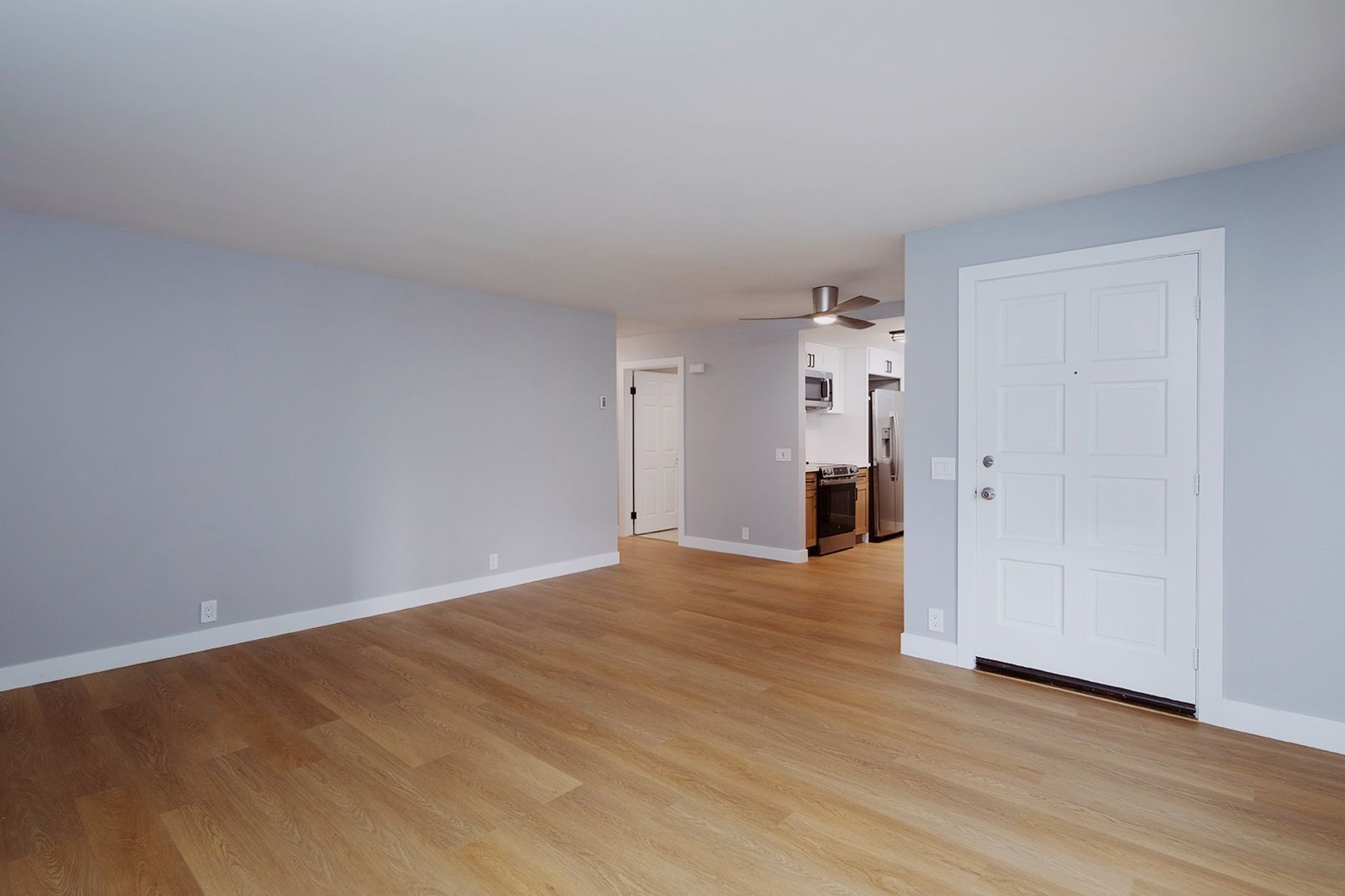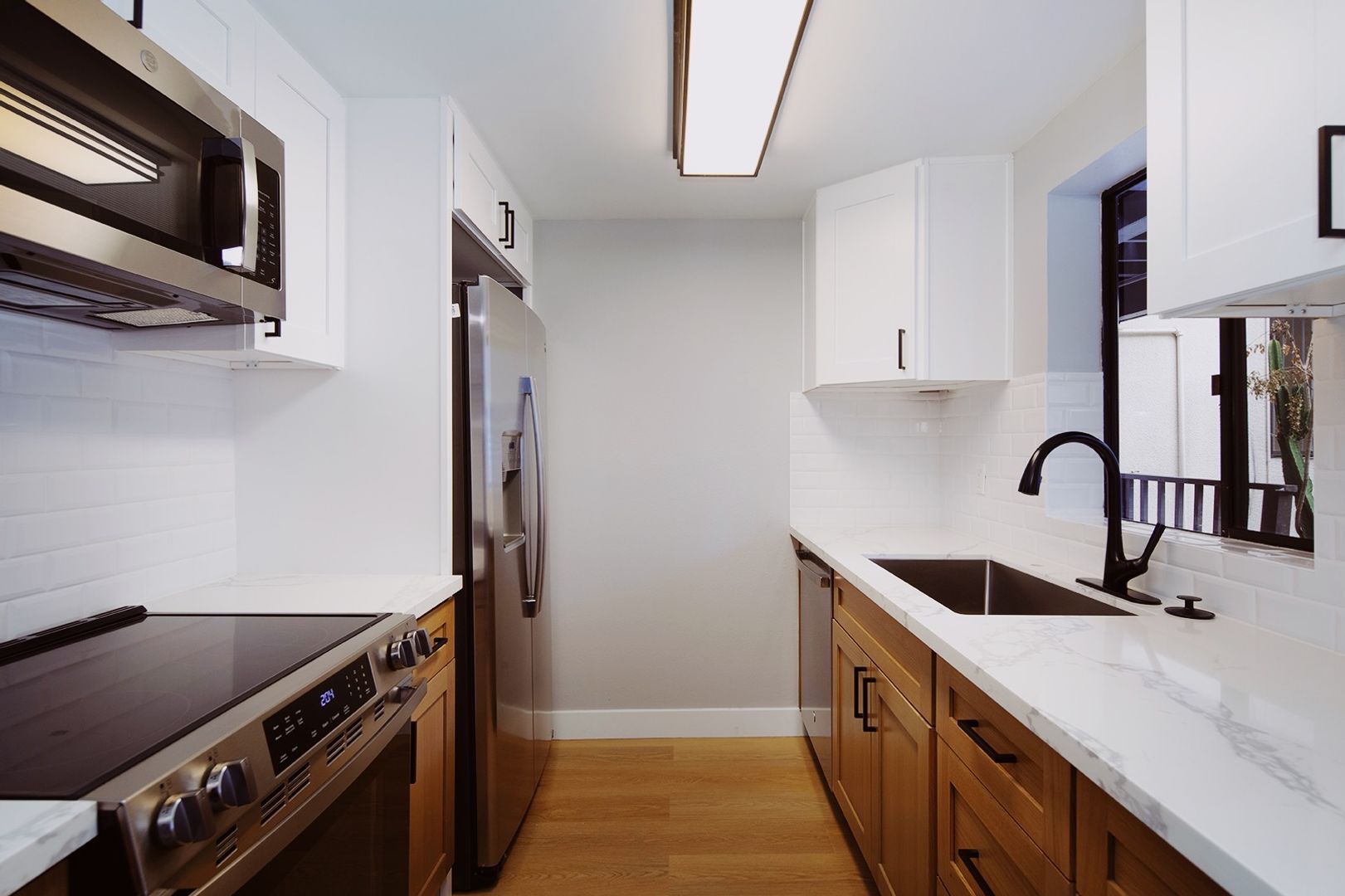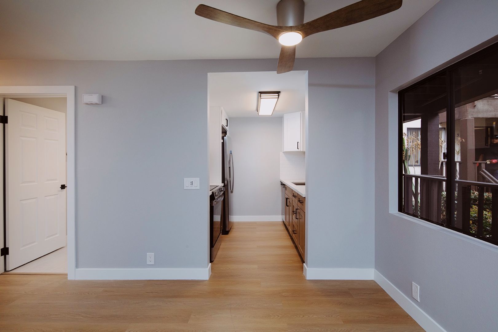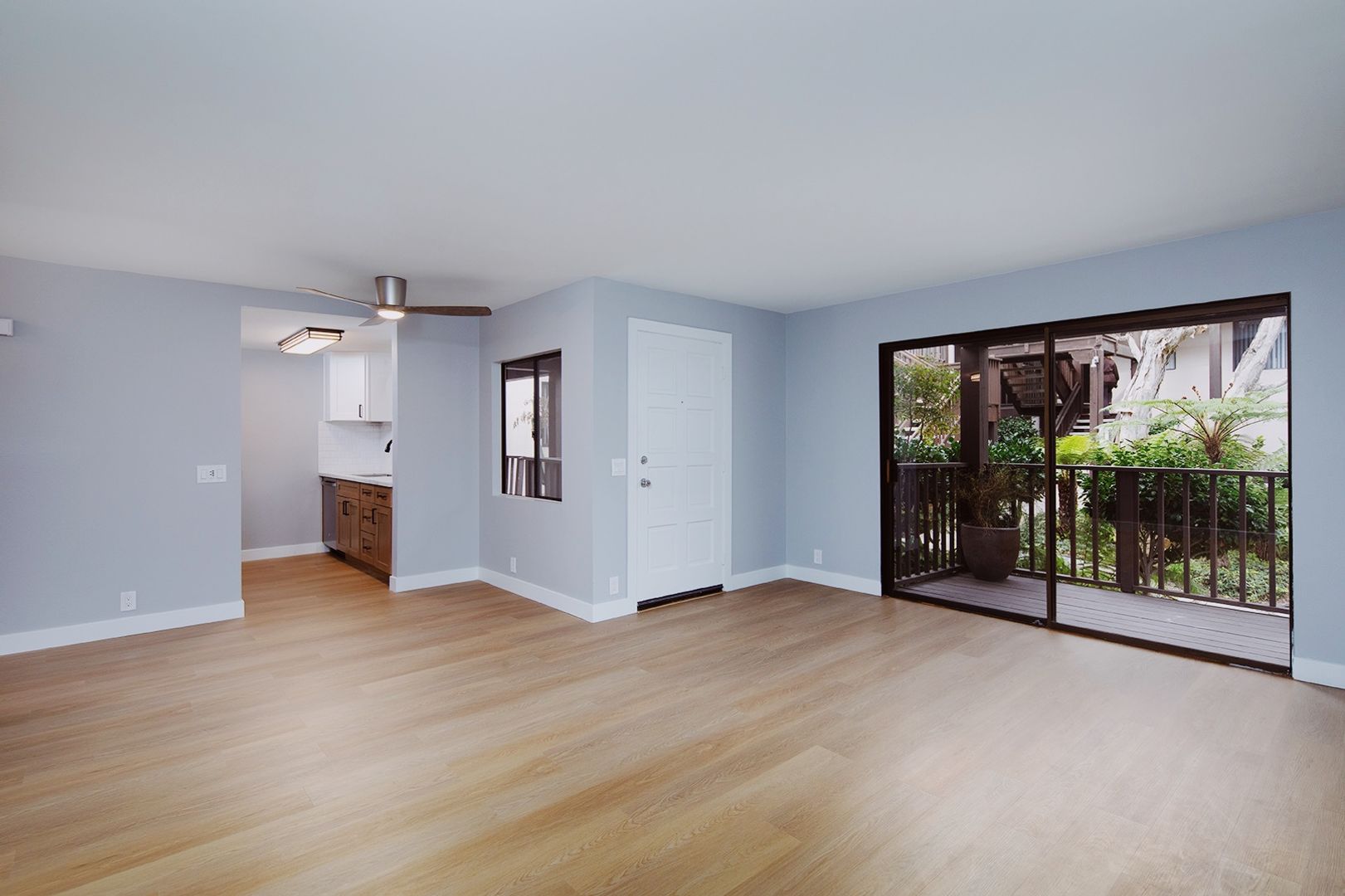Experience coastal living in this BRAND NEW 2 bedroom, 2 bathroom apartment home located in a beautiful 12-unit community in the heart of La Jolla Village. This fully renovated residence features a thoughtfully designed kitchen with quartz countertops, modern backsplashes, stainless steel appliances, a dishwasher, and a french door-style refrigerator complete with ice and water dispensers. The apartment showcases new hard surface flooring, a cozy fireplace, and a washer and dryer conveniently located in-unit. Both bathrooms have been completely renovated with modern walk-in showers finished in classic subway tile, creating a clean and contemporary feel. Additionally, new windows are scheduled to be installed by the end of the year.