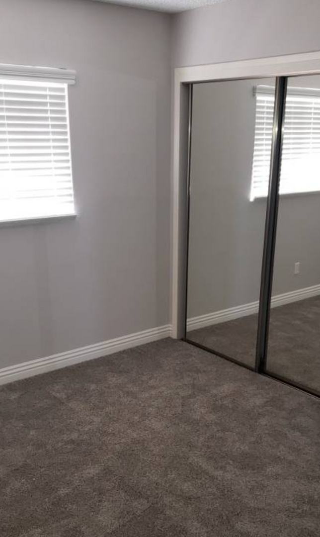 Emerald Manor Apartments offers Mid Century Style appeal and a convenient location with onsite laundry, a community pool, and BBQ area. This particular apartment is located on the second floor with carpet and plank flooring, a built-in bookshelf, mirrored closet doors, and more.